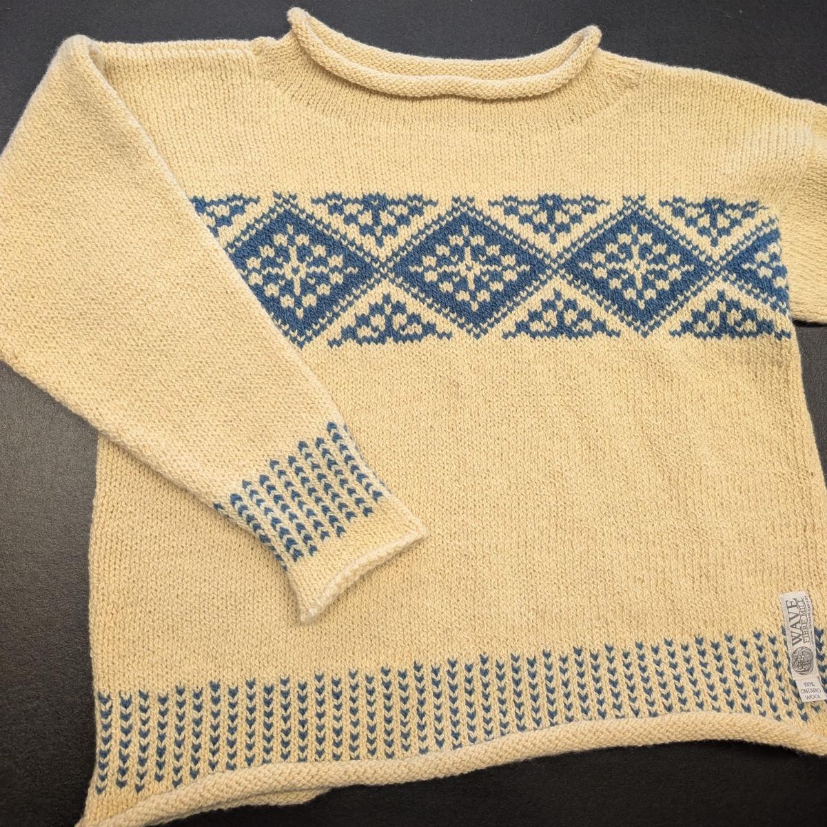 Nina has been working to create some new and unique sweater designs on our knitting machines! Introducing the Indigo Snowflake Sweater! We have two available at the mill.
