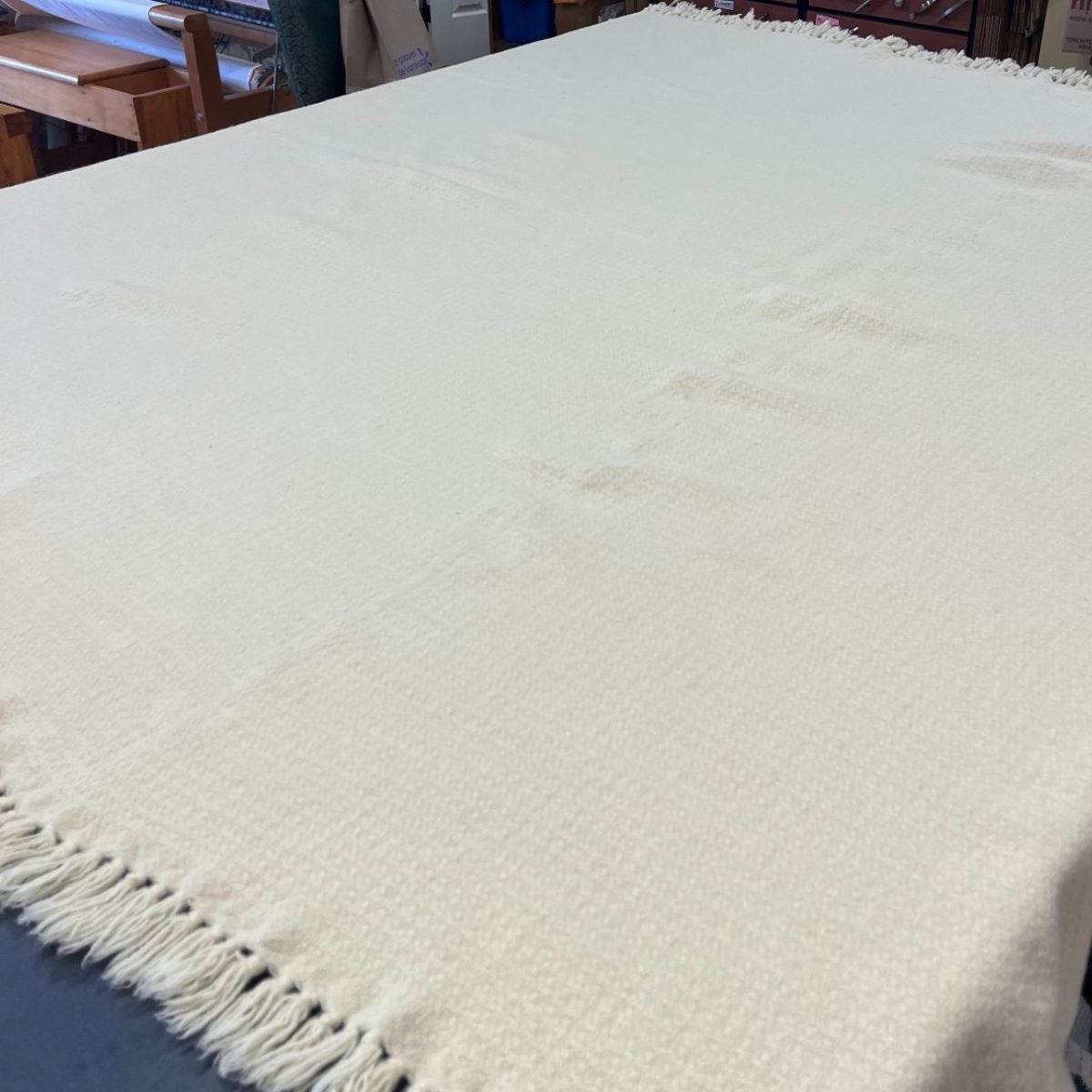 - Nicholas has produced our first Queen sized blanket on our 60 inch loom. Using a triple fold method, the finished piece is unfolded to three times the width of the warp! The wool is North Country Cheviot from Dunchurch – the colour of summer butter, it is sumptuous!